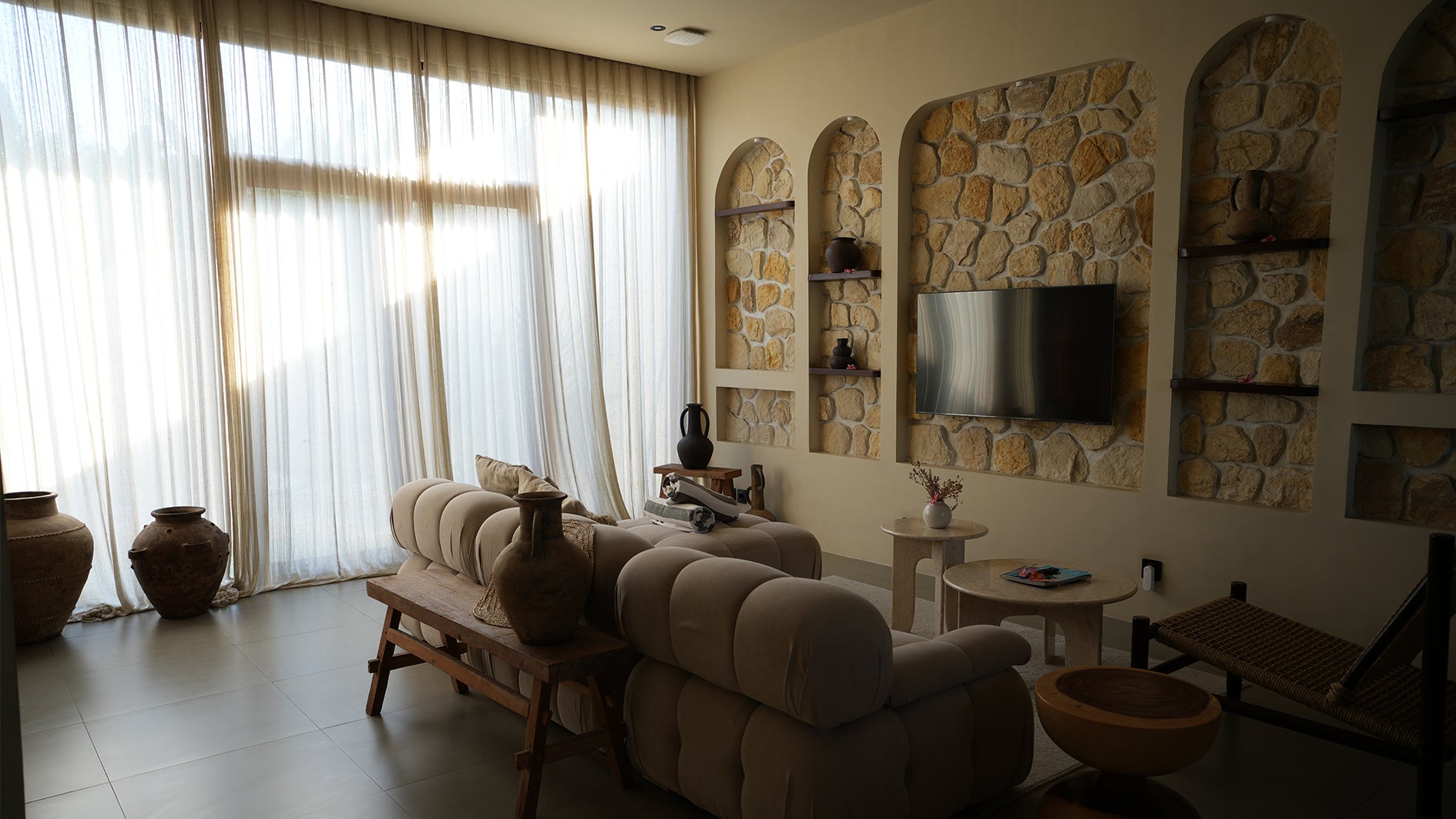 KAKTUS Villa features open-plan living, natural textures, and curated interiors that reflect both comfort and style—perfect for slow mornings and sunset rituals.